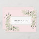 Elegant Watercolor Greenery Pink Thank You Card