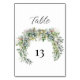 Elegant Watercolor Greenery Wedding Table Number