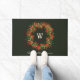 Elegant Watercolor Greenery Wreath Monogram Custom Doormat