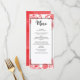 This design features elegant red tropical hibiscus flowers. The classy black text contrasts against the red floral watercolor illustration. The black fine line border surrounding the wording creates a sophisticated, trendy and chic style. The simple setup of the typography gives it a distinct style. Perfect for a destination tropical beach wedding. Elegant wedding menu card design with modern elements. Matching wedding invitations and other stationery items are also available.