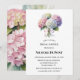 This elegant wedding design features beautiful watercolor hydrangea blooms in soft shades of pink, blush, and delicate white, with a hint of blue, surrounded by lush green leaves. The romantic floral arrangement creates a timeless and sophisticated look that is perfect for wedding invitations, bridal shower stationery, rehearsal dinner invites, or other wedding celebration décor. The soft watercolor style adds a graceful garden-inspired charm, making it ideal for spring and summer weddings or any couple who loves classic floral elegance.