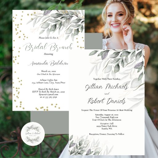 Elegant Watercolor Leaves Wedding CollectionDesigned by Ann Monahan