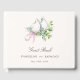 Wedding guest book featuring beautiful rococo inspired watercolor illustrations paired with elegant script and serif fonts in which all your personalized information is written in. You can find more matching products from this stunning wedding collection in our store.