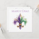Festive New Orleans Mardi Gras themed party favor in green gold and purple, the traditional colors of Fat Tuesday carnival. Perfect invite for NOLA themed parties. Fleur De Lis watercolor design.