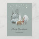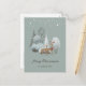 Cute Merry Christmas postcard featuring a watercolor winter scene with a buck and a doe in a snowy forest and shining stars above them. Easily personalise this beautiful holiday postcard with your family name, return address and additional text as desired.
