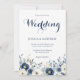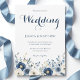 Elegant Watercolor Navy Blue Floral Script Wedding Invitation