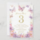 Elegant Watercolor One 3rd Birthday Butterfly Gir Invitation