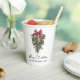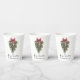 Modern Elegant Calligraphy Ink Script Watercolor Pines Winter Greenery with Burgundy Red Ribbon Bow Christmas Ornaments, Pine Cones and Holly Berries Merry Christmas Paper Cups