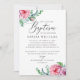 Elegant watercolor pink boho floral baptism invitation.