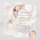 Elegant Watercolor Pink Flowers Marble Wedding Invitation