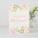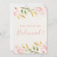 Ask your friends and family to be a part of your wedding with this floral "Will You Be My Bridesmaid" card. Elegant and modern floral bridesmaid proposal invitation features watercolor flowers in soft shades of pink and gold, with lush green botanical leaves. Personalise with your message on the back.