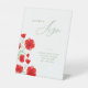 Elegant Red Watercolor Poppy Floral Greenery Leaves Guest Book Kindly Sign Wedding Pedestal Sign.