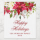 Elegant Watercolor Red Poinsettia Happy Holidays Wine Label