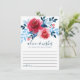 Simple yet elegant wedding advice & wishes card design featuring watercolor red roses and blue foliage.