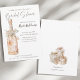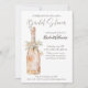 This elegant bridal shower invitation features a beautifully hand-painted watercolor rosé champagne in soft blush tones, draped gracefully with delicate folds and a romantic bow. The classic white background enhances the sophisticated and timeless feel, while the mix of modern script and refined serif fonts adds a stylish touch. Perfect for a chic, feminine, and classy bridal shower, this invitation is ideal for brides who love a soft, romantic aesthetic. On the back, a matching watercolor gift boxes in the same delicate hues with registry information adds a festive and celebratory touch to the invitation.
