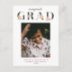 A modern and elegant graduation announcement featuring a photo of the graduate with the headline "congrats Grad" - grad in charcoal serif font, decorated with posies of watercolor roses in pink and orange. Personalise further with your graduate's name and details in pink and charcoal.