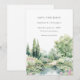An elegant watercolor garden wedding design featuring a scenic pond view, lush greenery, and soft florals. Ideal for couples announcing their wedding date with a romantic outdoor garden style, this fine art watercolor look is perfect for spring and summer celebrations.