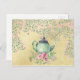 Elegant Watercolor Teapot and Flowers Gold Postcard