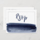 Blue watercolor wedding RSVP postcards with changeable text printed on white background