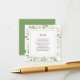 Simple and stylish, these Wedding Details Enclosure Cards are the perfect way to add additional information to your wedding guests when you send out the wedding invitations. Features hand-painted watercolor white flowers with green foliage border. The back features a solid green matching colour with white paint specks. All brown text is customisable.