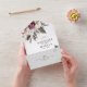 Unique all in one invitation features beautiful watercolor wildflowers in shades of burgundy, blush pink, cream, and white.