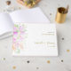 A beautifully presented guest book which came with a lovely gift box for storage. The book was hard back so stayed fresh after being handed around to all our wedding guests. We had lots of compliments about the design which went perfectly with our theme. Perfect, no issues at all with the printing. It arrived on time and came well packaged.
