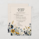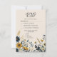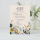This Elegant Watercolor Wildflowers Formal Beige Wedding RSVP Card features beautiful watercolor flowers in dark blue and yellow, modern typography, customisable menu selections, and QR Code for online responses.
