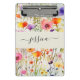 Elegant clipboard with a watercolor wildflower pattern. Personalise with your name.