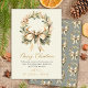 Elegant Watercolor Wreath Gold Bow Merry Christmas Holiday Card