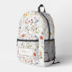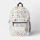 Colourful watercolour wild flower Backpack with pretty wild country flowers in purple, lavender, green leaves and more, You can personalised with the name and can change the background colour.