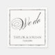 Below the script, you can easily personalize the napkin with the names of the couple and the wedding date using Zazzle's intuitive design tools. These napkins are perfect for modern receptions, cocktail hours, rehearsal dinners, or engagement parties that favor a timeless monochrome palette.