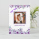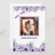 This beautifully designed "Save the Date" wedding announcement features a romantic couple embracing by the beach during sunset. Surrounded by elegant lavender and violet floral borders, the image is framed in a striking purple, enhancing the warmth and intimacy of the couple's moment. The announcement invites guests to mark their calendars for a wedding celebration on Saturday, August 8th, 20XX. A perfect blend of romance and style, ideal for beachside or floral-themed weddings.