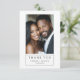 Elegant modern 2 photo wedding thank you card with a stylish modern typeface, and smiling bride and groom. A photo, with a heartfelt message on the back. The typeface with names and date is a classic elegant serif font. Replace the sample photos with your own favourite wedding photos.
