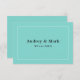 Personalised flat style note cards feature a chic and sophisticated design and monogram of a bride and groom's married name, with space on the back for a handwritten message. Aqua / robin's egg blue, black, and white colour scheme.
