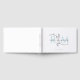 An elegant wedding guest book featuring a flowing monogram, with soft pastel aqua initials gently ghosted behind curved script typography and classic serif type for a graceful interplay of letterforms. A delicate botanical leaf element and fine center line add a pretty finishing touch that elevates your wedding monogram. Personalize with your names, date, and location on a clean white cover, then enjoy lined pages inside for signatures, personal messages, and well wishes to keep long after the day.