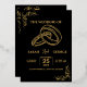 Elegant Wedding Black and Gold Foil Invitation. An ornate, gold frame and ornamentation decorate an elegant dark black background for a dramatic