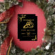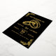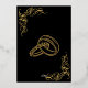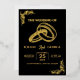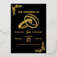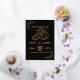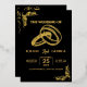 Elegant Wedding Black and Gold Foil Invitation. An ornate, gold frame and ornamentation decorate an elegant dark black background for a dramatic