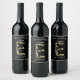 Elegant Wedding Black and Gold Letter E Monogram Wine Label