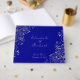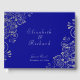 A beautiful and elegant way to remember the guests that attended your wedding and reception. On a blue background, silver grey swirls, flowers, and flourishes cascade around the corners and down the sides. Your names are in a stylish wedding script font. Add your first names and the wedding date.