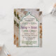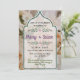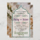 Elegant wedding invitation featuring a bouquet of flowers in the background and a green frame in the middle. Perfect for adding a touch of sophistication and nature-inspired charm to your special day.