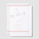 The Wedding is written in elegant black script. Bride and Groom's Names and Wedding Date. Double geometric stripes in red colour.