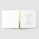 Elegant, classic yellow gold foile and white wedding keepsake guest book features a chic design in timeless gold foil on a pristine white background. Two delicate decorative flourishes each containing a single heart envelope the name of the bride and groom and symbolise that two hearts become one. The spine features custom text in white on a glamourous gold foil background. Personalise this wedding design with your details in beautiful lettering and script. The back of the book reflects a simple minimalist design and is solid in colour.