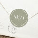 Elegant Wedding Classic Minimalist Monogram Green Round Sticker