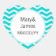 Elegant Wedding Date Blue Chevron Pattern Heart Sticker
