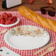 Elegant Wedding paper plates with muted green and peach sophisticated floral detail from Ricaso