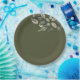 Elegant Wedding paper plates with muted green sophisticated foliage detail from Ricaso