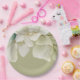 Elegant Wedding paper plates with muted green sophisticated foliage detail from Ricaso