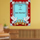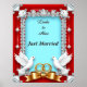 An artistic red frame adorned with diamonds and roses, featuring two white doves and a symbolic golden ring, representing love, marriage, and celebration.