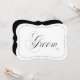 Classic understated black and white wedding sign with a modern touch featuring the elegant script of the word "Groom" and a black border. Great for the groom's chair or other special arrangements like dressing room door sign or limo.
