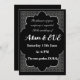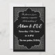A sleek and modern wedding invitation featuring silver geometric patterns on a black background. Perfect for couples seeking a chic, luxurious wedding vibe with cultural elegance.